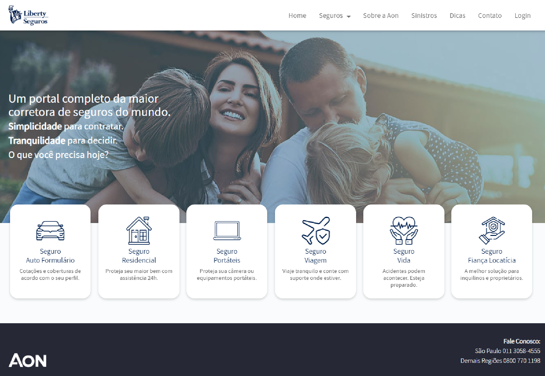 Plataforma web para revenda de seguros com processos completos e interface intuitiva. Criada para empresas parceiras da Aon, permite oferecer seguros ao público interno e externo. Personalizada com a identidade da marca, oferece apoio operacional e comercial da Aon, líder global em corretagem de seguros.