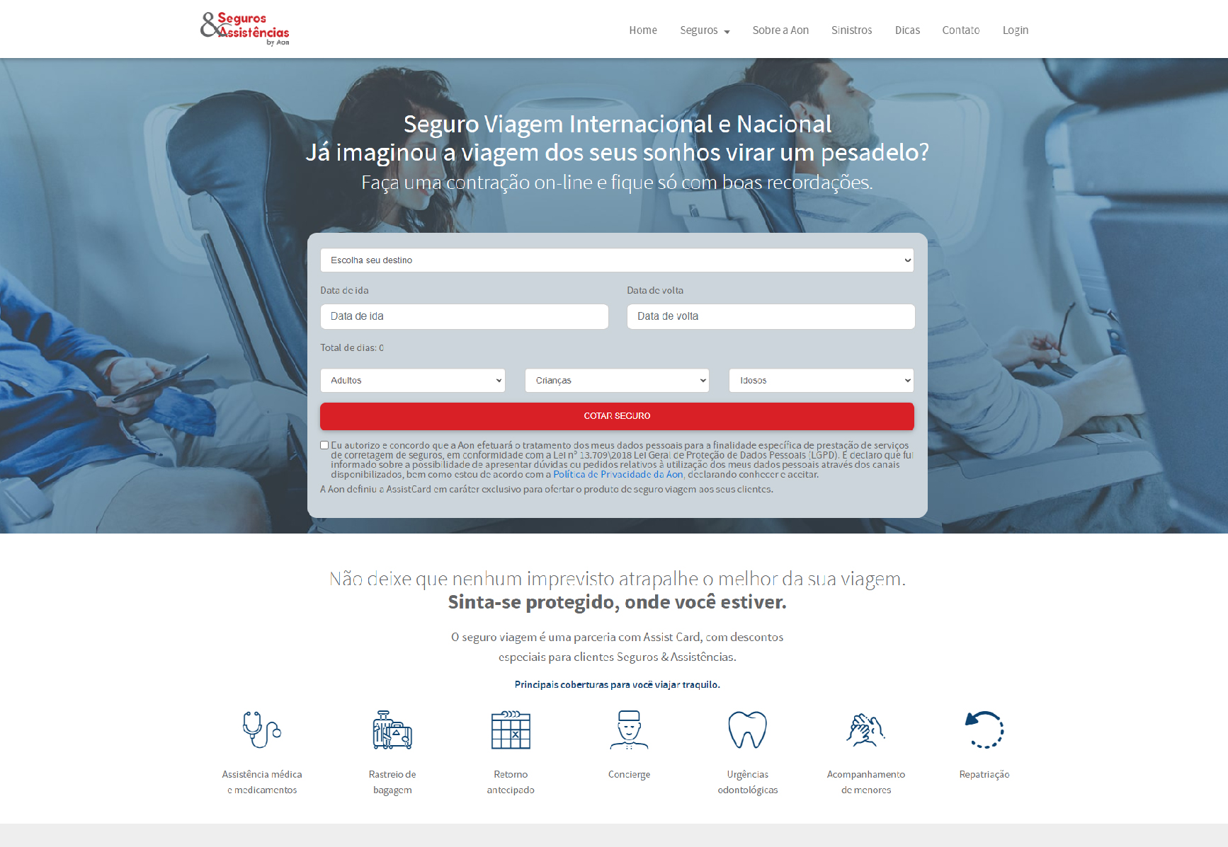 Site e sistema para venda de seguro viagem. Em parceria com a Assist Card, possibilita ao usuário cotar, escolher e pagar o seguro online, com descontos exclusivos do parceiro. Focado em usabilidade e simplicidade para todos os perfis de cliente.